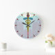 Reloj Redondo Grande Símbolo Médico CADUCEO DE ORO Luz Azul Aguamarina