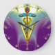 Reloj Redondo Grande SÍMBOLO VETERINARIO del CADUCEO DE ORO/trullo