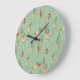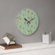 Reloj Redondo Grande Southwest Geo Step | Green Feather Pattern