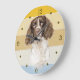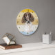 Un retrato de un hermoso perro Springer Spaniel es la característica de este reloj. La imagen se coloca sobre un fondo retro, ligeramente perturbado y rayado de puesta de sol. Los números dorados oscuros y los marcadores en forma de diamante alrededor del perímetro hacen que el reloj sea fácil de leer. Perfecto para cualquiera que haya perdido el corazón por un español.