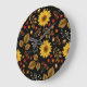 Reloj Redondo Grande Sunflowers de otoño: fondo negro de arce