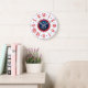 Este reloj de pared muestra las palabras "End The Fed" con una colección de billetes de $100 dentro de las letras sobre un conjunto de estrellas azules y rojas en este tema rojo, blanco y azul. Este reloj está hecho para cualquier pared e impreso con un proceso AcryliPrint®HD y hecho de acrílico grado A. La batería funciona con una sola batería AA para uso interior, no recomendado para uso al aire libre.