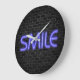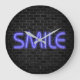 Reloj Redondo Grande Texto SMILE en luces de neón en ladrillo