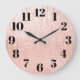 Arte digital de textura falsa de oro rosa pálido con números de caras de grasa negra en un reloj de pared personalizado para ella. También puede cambiar el color del texto de la cara del reloj. Elegancia moderna. Diseño de glamour.