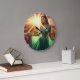 Let this stylish large wall clock keep up with the time, for you. A beautiful woman in a sparkling green dress is standing in the flowery meadow, with the brightly colored sun beams shining down on her.