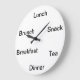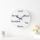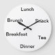 Es hora de comer. Reloj que muestra los horarios de las comidas en lugar de las horas.