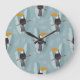 Reloj Redondo Grande Tocan de la jungla, fondo azul transparente.