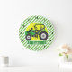 Reloj Redondo Grande Tractor de granja verde con amarillo; Verde y
