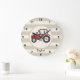 Reloj Redondo Grande Tractor de granjas rojas en franjas de Tan