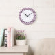 El hip hop y el moderno reloj de pared de Chevron. Este reloj fresco presenta un patrón de zag de chevron zig en color morado y blanco. Añadir texto a este diseño para darle un toque personal.