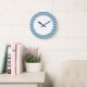 El hip hop y el moderno reloj de pared de Chevron. Este reloj fresco presenta un patrón de zag de chevron zig en azul y blanco. Añadir texto a este diseño para darle un toque personal.