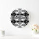 Reloj Redondo Grande Triángulo blanco negro retro cuadrado patrón mosai