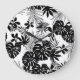 Reloj Redondo Grande Tropicales blancos y negros: Naturaleza silueta