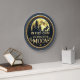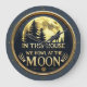 Este cartel redondo, enmarcado en bronce, presenta el texto atrevido y metálico "EN ESTA CASA QUE HORAMOS EN LA LUNA". Como telón de fondo, una silueta de lobo aullaba a una gran luna llena sobre un bosque de pinos. El arte es muy oscuro, caprichoso y un poco gótico, por lo que es perfecto para una decoración peculiar.