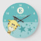 Reloj Redondo Grande Verde con un nombre de bebé de estrellas jirafa li