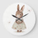 Reloj Redondo Grande Vestido Floral de Conejo con Acuarela Arte