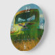 Reloj Redondo Grande Viejo Camión y Campo de Granja Verde