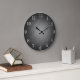 Este divertido reloj cuenta con un diseño de fondo hecho para parecer un viejo pizarrón negro que ha sido escrito y borrado muchas veces y tiene un aspecto de viñeta. El diseño se desvanece de negro oscuro en el exterior a más claro en el medio. Las horas están marcadas con letras grises en una fuente divertida con un aspecto dibujado a mano.