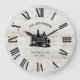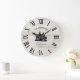 This rustic modern wall clock features a trendy farmhouse style design with a roman numeral clock face and a light white wood plank backdrop. It makes a perfect gift for newlyweds, wedding celebrations, or housewarming occasions. Additionally, it's a great choice for a home makeover in your cabin, cottage, or country house. To customize, simply click 'Personalize This Design,' enter your details, and Zazzle will handle the rest.