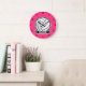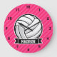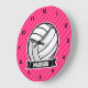 Reloj Redondo Grande Voleibol en franjas rosadas neonesas
