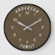 Large round call clock with dark, faux leather-style image for the background. The name is easily changed with the template. Selecting “Personalize this design” offers you several edit options to easily change the text (wording, plus type font, color, size, position) and to possibly edit the design elements. You may also want to scroll down to the section “Transfer design to a product” for a few suggestions about other items this design can be used on.