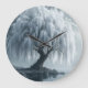 Reloj Redondo Grande Weeping willow by a pond, black and white