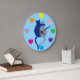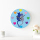 Reloj Redondo Grande Whimsical Blue Cat Clock with Rainbow Hearts