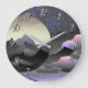 Reloj Redondo Grande Whimsical Moon and Mountains Abstract Art
