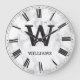 Create your own personalized wall clock with your custom name on an elegant white marble background.