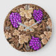 Reloj en un vintage patrón de tapiz William Morris de uvas violetas profundas contra un fondo de viñas y hojas marrones de chocolate claro a oscuro, realzado digitalmente y coloreado
