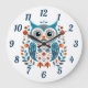 Reloj Redondo Grande Wise Blue Owl Scandinavian Folk Art