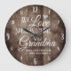 Fun family clock with wood plank textured background. We Love spending time with grandma custom grand kids names. Add the grand kids names at the bottom of the clock for a unique keepsake gift.