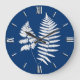 Reloj Redondo Grande Woodland Fern Pattern, Cobalt Blue and White