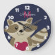 Reloj Redondo Grande Woodland Raccoon Adorable Monogramado Personalizad