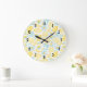 Reloj Redondo Grande Yellow Lemons & Blue Flowers Illustrated Pattern