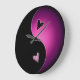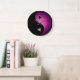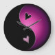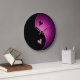 Un reloj de pared de símbolo negro y rosa yin yang para el personalizar.