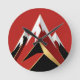 Modern Abstract Mountain Range Design wall clock featuring, a Red mountain range with black, gold and white accented peaks on a red background.