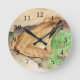 Reloj Redondo Mediano Acuarela de rana de madera