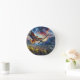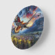 Un águila hermosa se eleva sobre una ciudad todavía somnolienta a medida que el sol sube sobre la montaña.