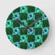 Reloj Redondo Mediano Ajedrez azul verde y cielo o cian, con rectángulo