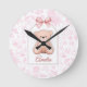 Reloj Redondo Mediano Amelia | Diseño de guardería de osito rosado perso