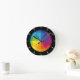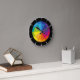Sutil, pero abstracto. Arcoíris combinado con negro y blanco. Reloj de pared, bastante discreto.