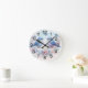 Armonía de pájaro azul en un Reloj redondo de perca floral Un hermoso diseño acuático con dos pájaros planos encaramados, rodeados de delicados acentos florales. Suave y elegante, perfecta para los amantes de la naturaleza y de las aves. Diseño de acuarelas, amantes de los pájaros, idea de regalo, amante de la naturaleza, amantes de la artesanía. diseño