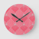 This clock has an art deco design of diamonds in silver on a field of pink.