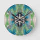 Reloj Redondo Mediano Artistic Fluid Abstract in Aqua & Green