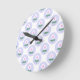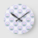 Baby Shower morado de flores de margarita en el reloj redondo de Fiesta en Bloom ilustrado por el diseñador internacional Kathrin Legg