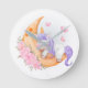 `Baby Unicorn Over The Moon with Flowers Round Clock