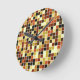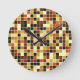 Reloj Redondo Mediano Baldosas de piscina, mosaicos marrones, patrón geo