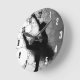 La bailarina clásica se ve igual de elegante en esta moderna huella abstracta. Los círculos negros y blancos componen la silueta de esta bailarina de ballet en un tutu. Perfecto para los bailarines de tu vida o para los que simplemente aman el ballet, o incluso un estudio de baile. Cute Ombre Resumen Baile Blanco Negro Ballerina Redonda Reloj