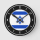 Bandera israelí Reloj redondo elegante con la bandera israelí colocada en el centro y los adorables números del reloj blanco en el borde del reloj. Delicioso fondo negro con elementos blancos ovalados completan el diseño, haciendo hincapié en la elegancia. La hermosa combinación de blanco y negro con la hábil integración de los colores de la bandera nacional hacen de este reloj el regalo perfecto y el gran show en la pared. © 2022 CountriesOfTheWorld